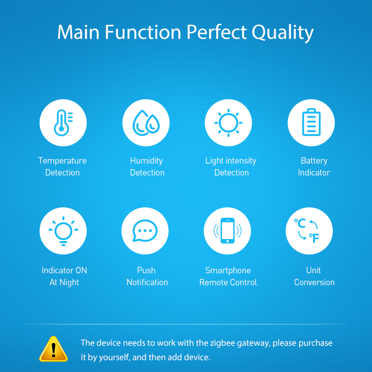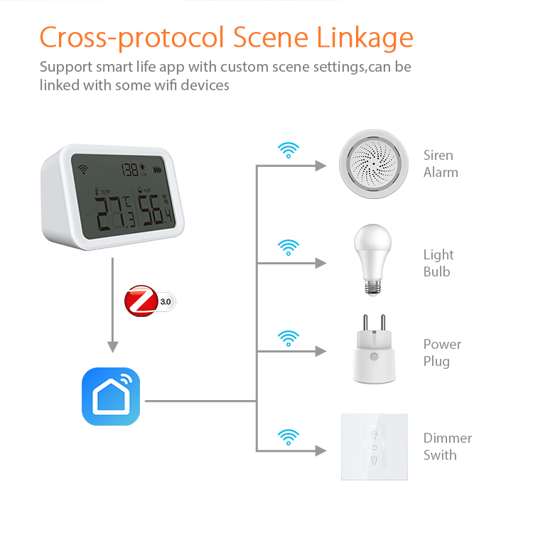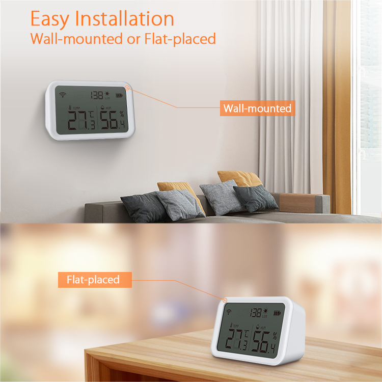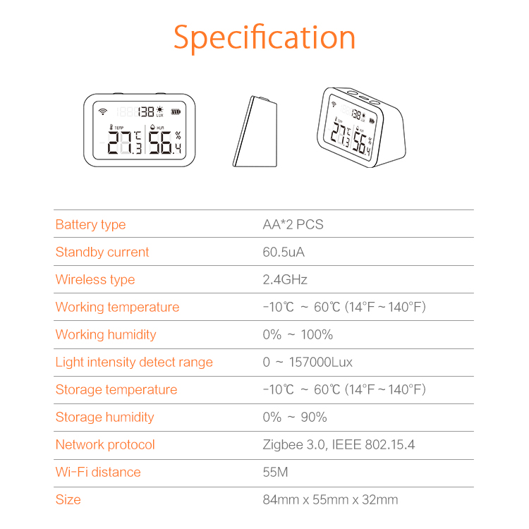 Zigbee3.0 light intensity detection, temperature and humidity detection, large-screen & battery display, powered by Tuya